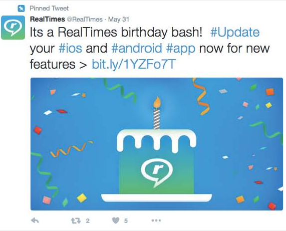 Solution: We used social media to invite customers to a "birthday party" to celebrate the re-launch of the app featuring the new functionalities.